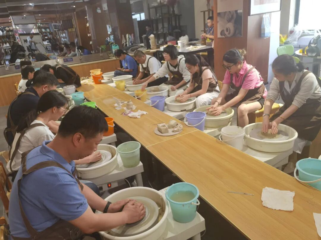 最令人兴奋的莫过于在“瓶窑陶艺馆”的陶艺制作体验。在瓶窑陶器烧制技艺的传承人吴如琴老师的指导下,我们纷纷化身为陶艺师,亲手触摸泥土的温润,制作的每一个步骤都充满了挑战与乐趣。看着自己亲手制作的陶艺作品逐渐成形,那份成就感与喜悦之情溢于言表。这不仅是一次技艺的学习与体验,更是一次心灵的洗礼与升华。
