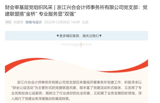 浙江IM体育针对农村集体资产存在的管理短板,充分发挥专业优势,以党建引领运用专业技能破解经合社发展难题,提供社会服务。事务所对参与经合社集体经济治理,助力乡村集体经济壮大所形成的经验,进行提炼总结,相关文章《党建联盟搭“金桥” 专业服务显“双强”》发表在《财务与会计》“财会审基层党组织风采”栏目。