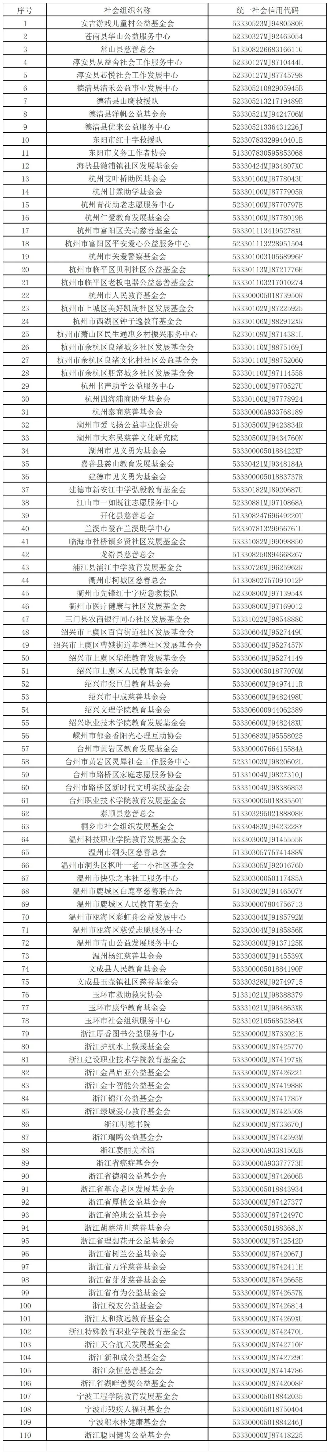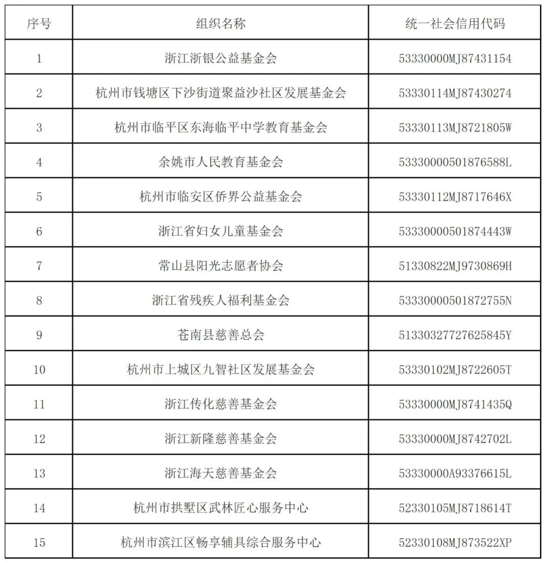 一、浙江省2024年度-2026年度符合公益性捐赠税前扣除资格的公益性社会组织名单