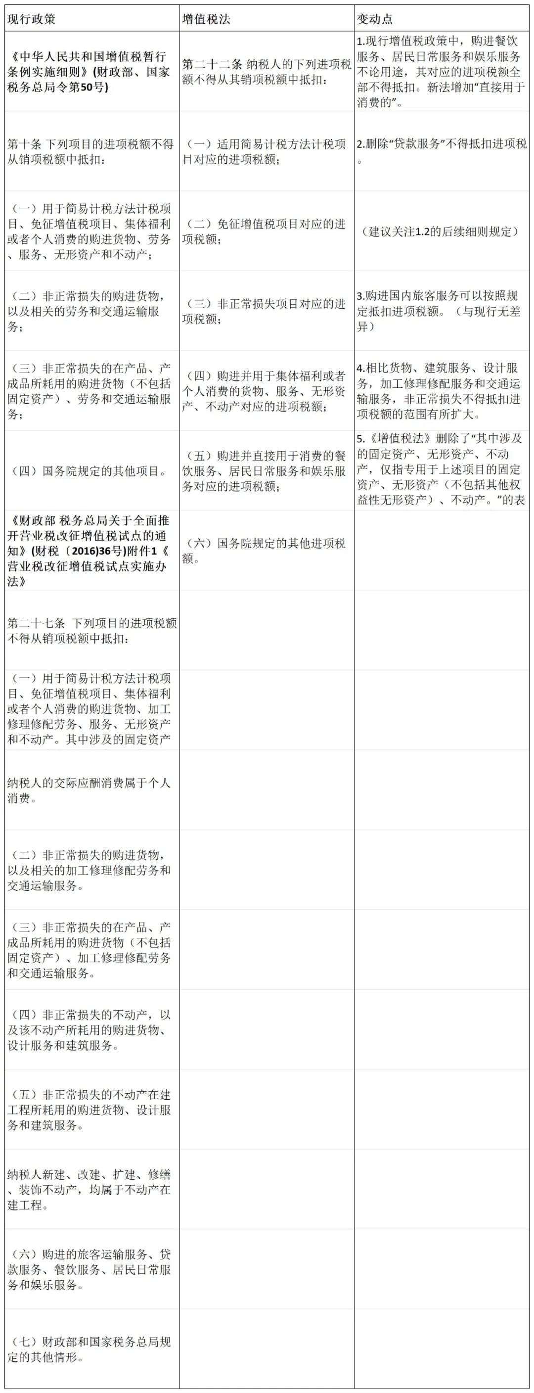 增值税立法影响之“不得抵扣的进项税”的变化!