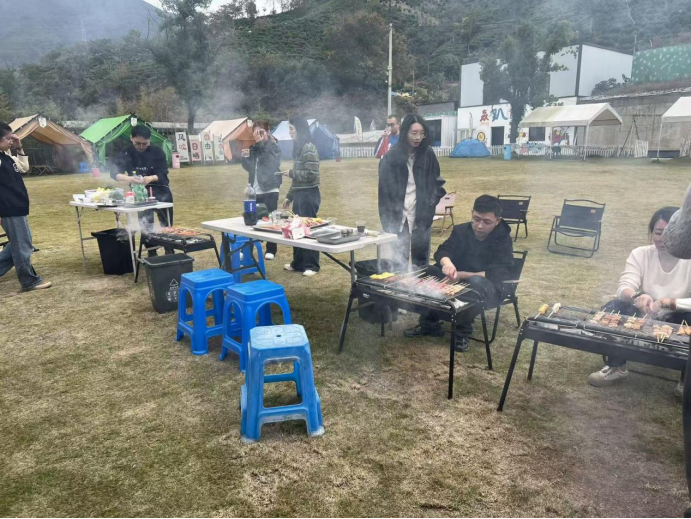 从上午十二时持续至下午二时,长达两小时的烧烤时光为大家提供了充分的交流空间。同事们化身“烧烤大师”,各展身手,炊烟袅袅中欢声笑语不断。大家一边品尝着自己亲手制作的美味,一边畅谈工作与生活,彼此间的了解与情谊在轻松愉快的氛围中悄然升温。营地内设置的秋千、跷跷板以及设施齐全的轰趴馆,也为同事们提供了多样的休闲选择,让大家得以彻底放松身心。