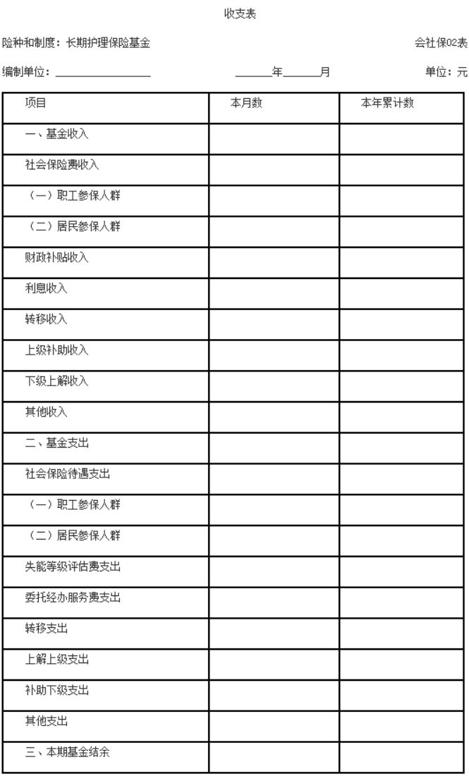 (一)长期护理保险基金的收支表格式和编制要求。