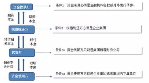 (2)企业集团向金融机构借款或对外发行债券取得资金后,由集团所属财务公司与企业集团或者集团内下属单位签订统借统还贷款合同并分拨资金,并向企业集团或者集团内下属单位收取本息,再转付企业集团,由企业集团统一归还金融机构或债券购买方的业务。
