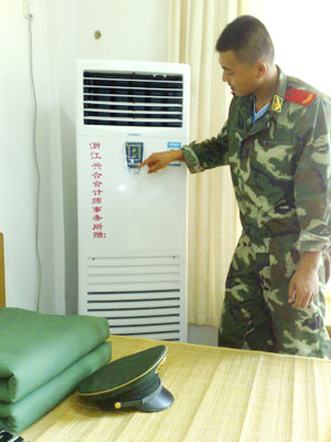 Time:2009-07-21夏日炎炎,酷暑难当,杭州作为我国著名的四大火炉之一,连日来气温不断上升,最高温度达到了38°C。根据市政府规定,市内各个工地上的民工宿舍都安装了空调,但是浙江IM体育试玩董事长IM体育了解到,杭州武警反恐分队的武警战士宿舍却没有安装空调,每到晚上,武警战士们常常因为炎热而无法入睡,经常在半夜里起来冲凉数次,影响了白天的训练和执勤。为此,浙江IM体育试玩当即购买了两台柜机空调,并上门为反恐分队的战士宿舍进行了安装。