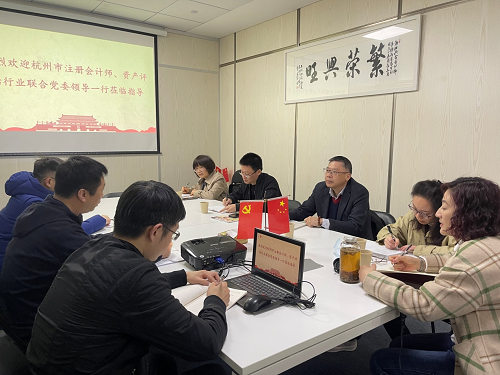 3月24日,杭州市财政局会计处处长、杭州市注册会计师 资产评估行业党委副书记章俊,杭州市注册会计师 资产评估行业党委专职副书记滕明湘,杭州市注册会计师协会秘书长李勤一行莅临浙江IM体育调研指导党建工作并召开交流座谈会,支部书记IM体育试玩、副书记杨铃建及支委委员参加了座谈。
