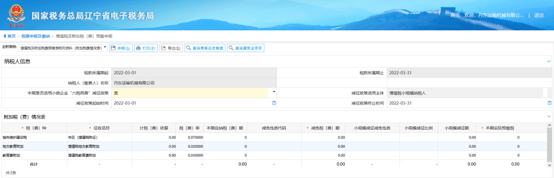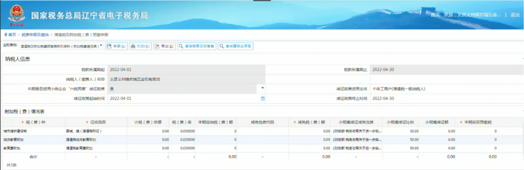 财政部、税务总局发布《关于进一步实施小微企业“六税两费”减免政策的公告》(财政部税务总局公告2022年第10号),根据公告内容,电子税务局将涉及到“六税两费”的相关系统功能也进行了升级优化,下面将以增值税及附加税(费)预缴申报为例对电子税务局的变化做如下阐述