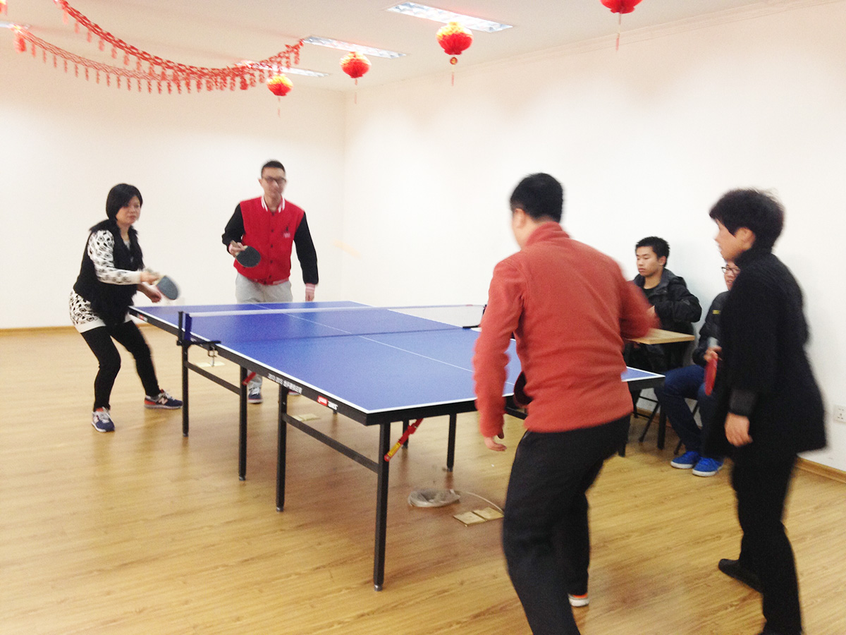 比赛开始后,大家迅速进入状况,虽然选手们没有经过专业的训练,但平时都抽出时间积极准备,打球动作有模有样。赛场上各位选手们直拍与横拍,进攻与防守,推挡与提拉,欢声笑语不断,啦啦队的加油声、呐喊声此起彼伏,气氛热烈而和谐。选手们为了自己的团队你争我夺,不放过一个机会,充分展现了团队凝聚力和荣誉感,不服输的劲头展现得淋漓尽致。