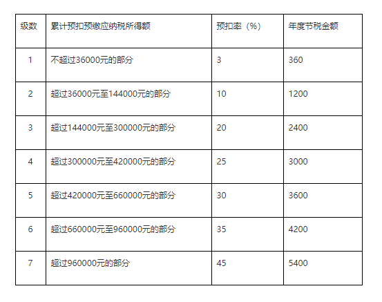 我们目前实行的是七级超额累进税率,每级税率缴存期间每年的节税额如下: