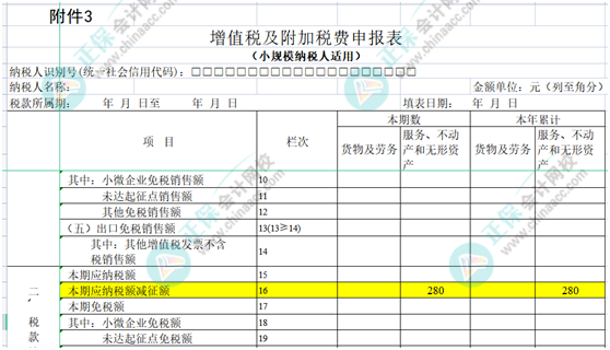 ①主表:小规模纳税人将抵减金额填入小规模主表的第16栏“本期应纳税额减征额”。