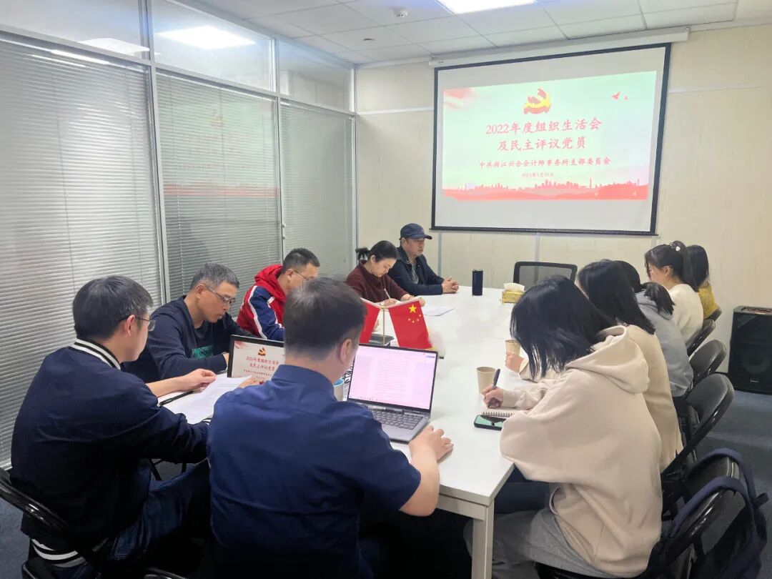 Time:2023-03-203月15日,浙江IM体育党支部召开2022年度组织生活会,会议由支部书记IM体育APP主持,拱墅区财政局人事科科长、区行业党委副书记郑静、区行业党委委员严玮佳到会对我所的党建工作作指导。