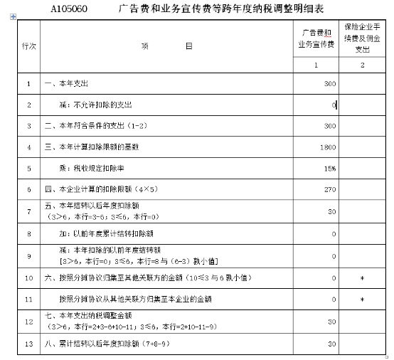 A105060《广告费和业务宣传费等跨年度纳税调整明细表》填报说明: