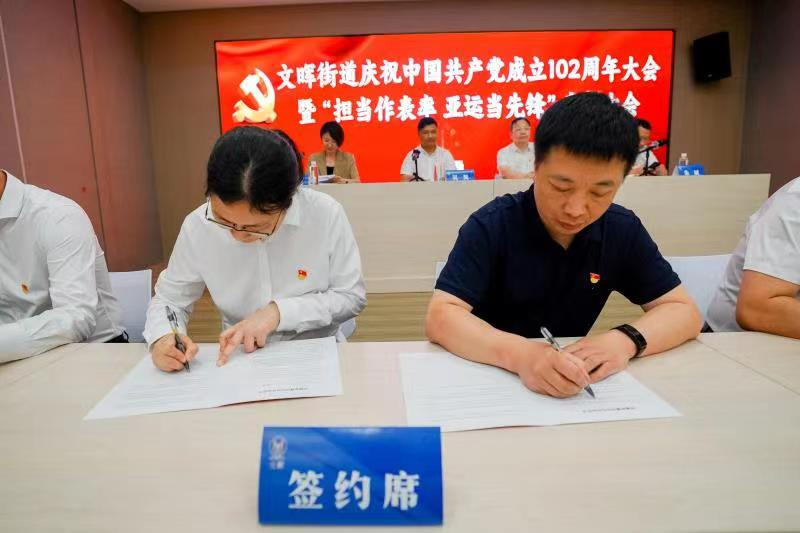 签约后,双方将开展区域化党建联建项目合作,重点在护航亚运、志愿服务、救济帮扶、微心愿认领、服务现代化商务社区等工作上充分发挥党组织的引领作用,并就共同开展基层治理工作,定期交流工作经验,共享工作信息,加强党组织建设,从而达到“资源共享、优势互补、共同发展”的目标,为加强基层治理体系和治理能力现代化建设,推进共同富裕现代化基本单元建设注入动力。