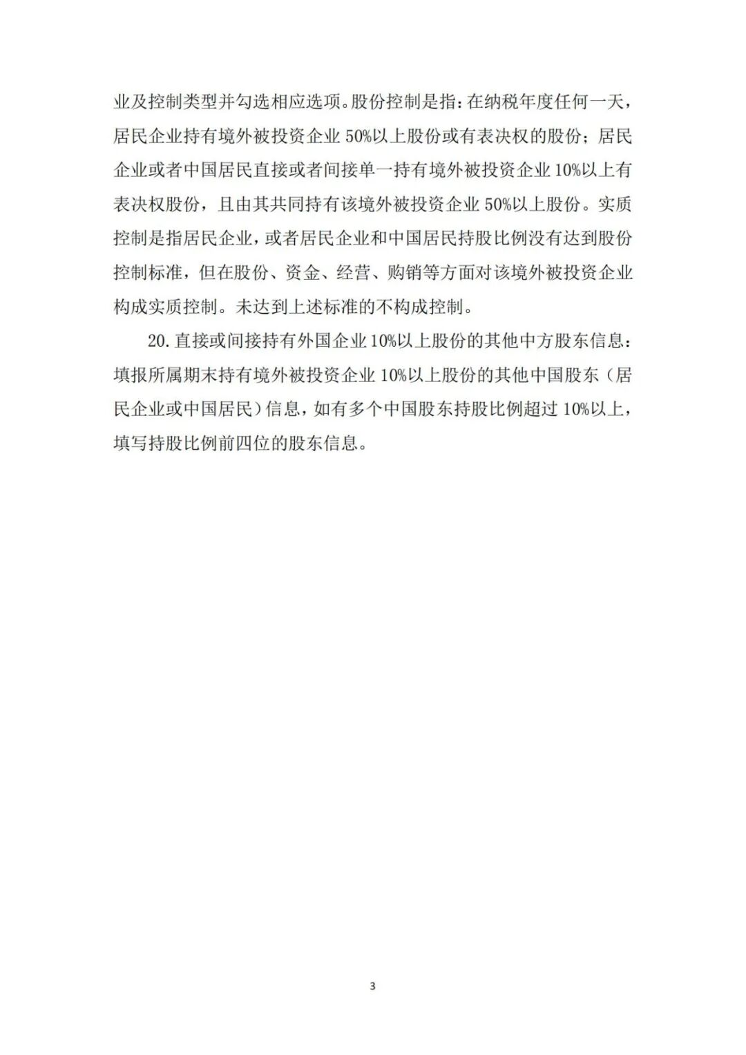 一、居民企业或其通过境内合伙企业,在一个纳税年度中的任何一天,直接或间接持有外国企业股份或有表决权股份达到10%(含)以上的,应当在办理该年度企业所得税年度申报时向主管税务机关报送简并后的《居民企业境外投资信息报告表》(见附件)。