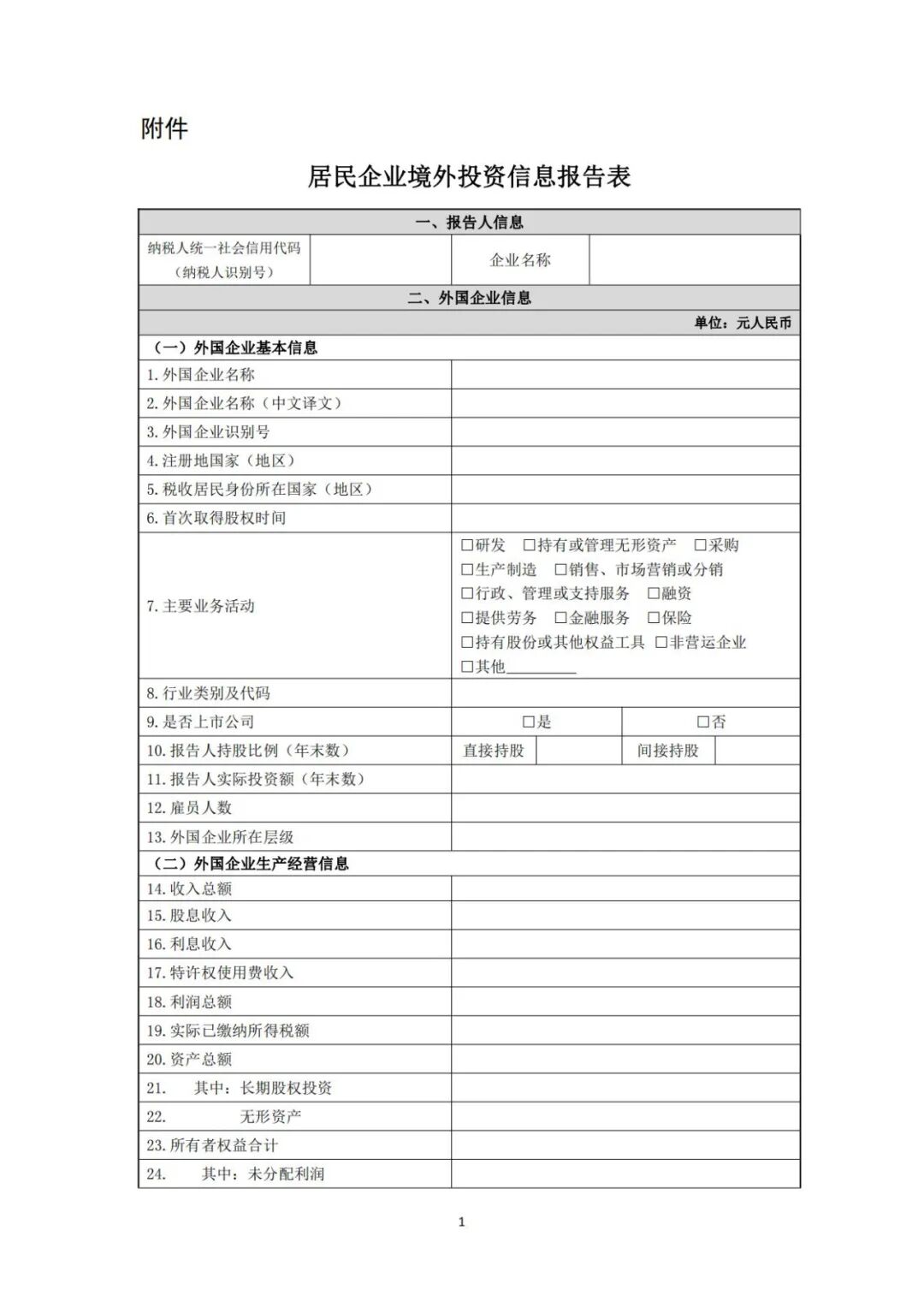 附件: 居民企业境外投资信息报告表